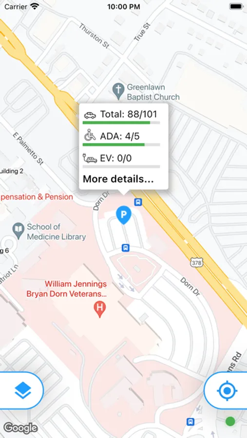 Tired of searching for a free parking space? Our app is tailored for you! Effortlessly find available parking spaces at the William Jennings Bryan Dorn Veterans Affairs Medical Center with this application. It's the perfect companion for all visitors of the medical center, whether patients, their families, or just guests. Key features include: