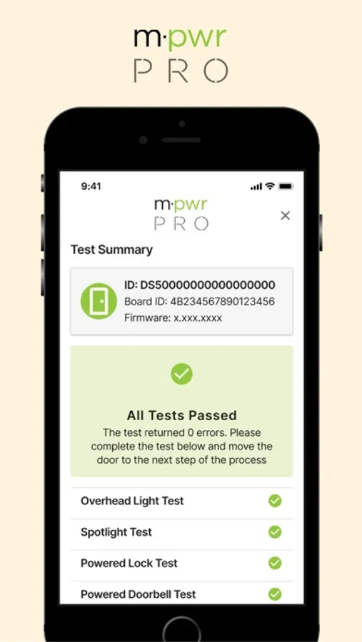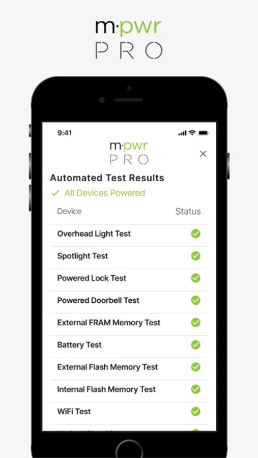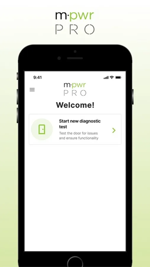 The Masonite PRO application allows users to run a diagnostics test against an M-Pwr door to validate smart components are working as intended.