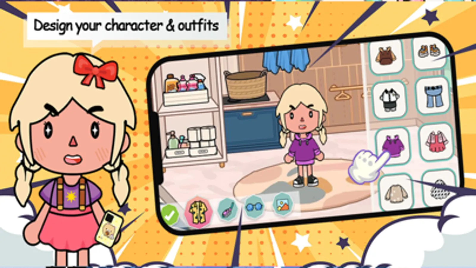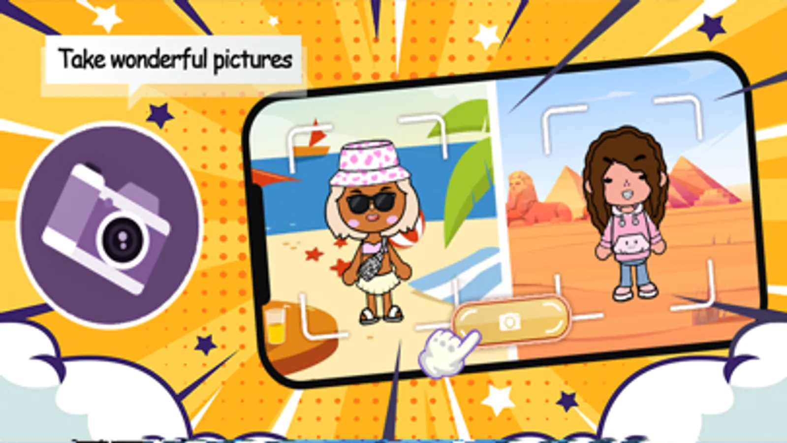• Various ways to play, including theme backgrounds, dress up, and picture-taking