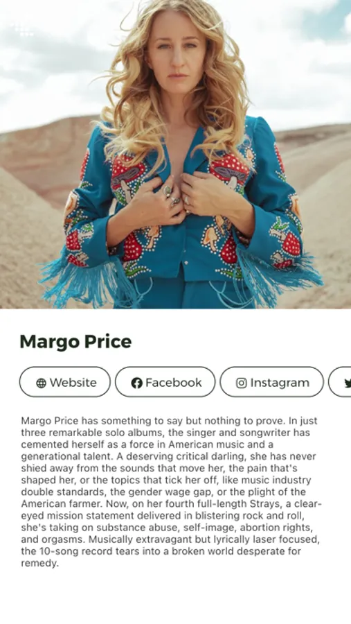 App features detailed schedules by stage, artist bios, maps, food and drink information and much more!