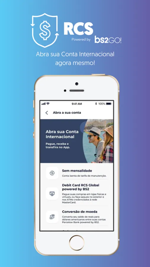 A RCS - Rede Câmbio Seguro é conhecida por seu grupo de lojas localizados em várias cidades do Brasil, oferecendo serviços no mercado de câmbio, logística e turismo. E agora, estamos orgulhosos de apresentar mais nova novidade: o aplicativo de Conta Internacional RCS Global.