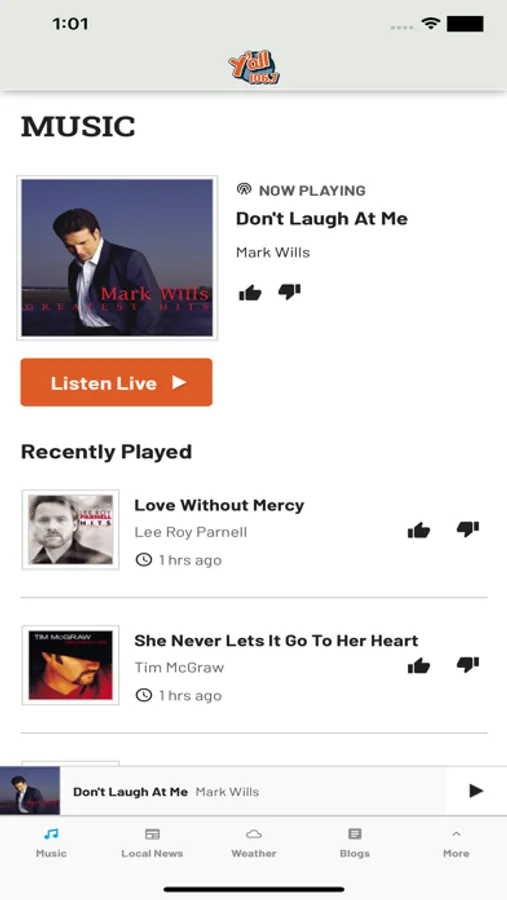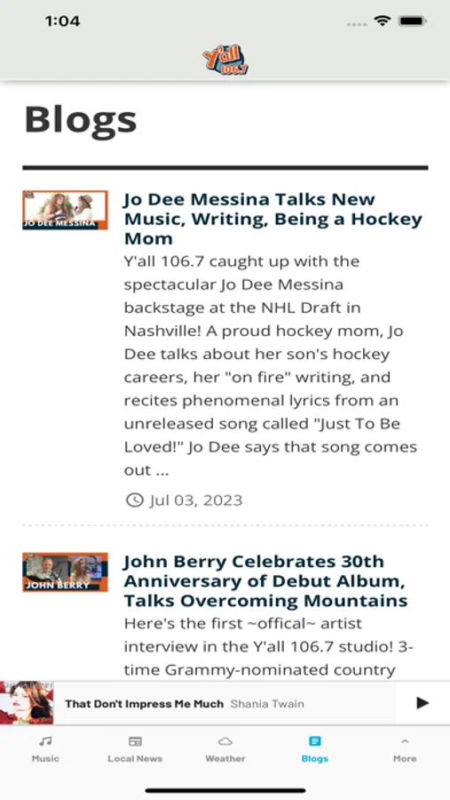 Y'all 106.7 doesn't like clutter, so you won't hear news, traffic, weather, sports, or a lot of DJ chatter. We believe in the music, that's why we just play "The BEST Country".
