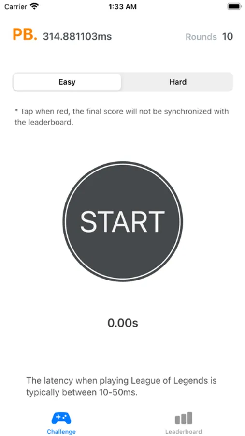 - Easy Mode: Click "Start," and when the countdown ends with the button turning red, quickly tap it to record your reaction speed.