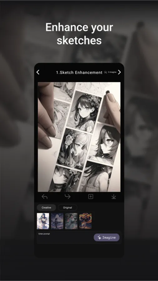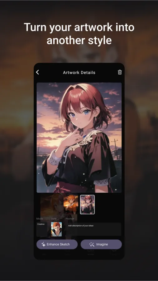 My Gallery: An intimate space to relish your artistic evolutions. Trace back to each input, visualize results, and remember the style prompt that inspired each creation.