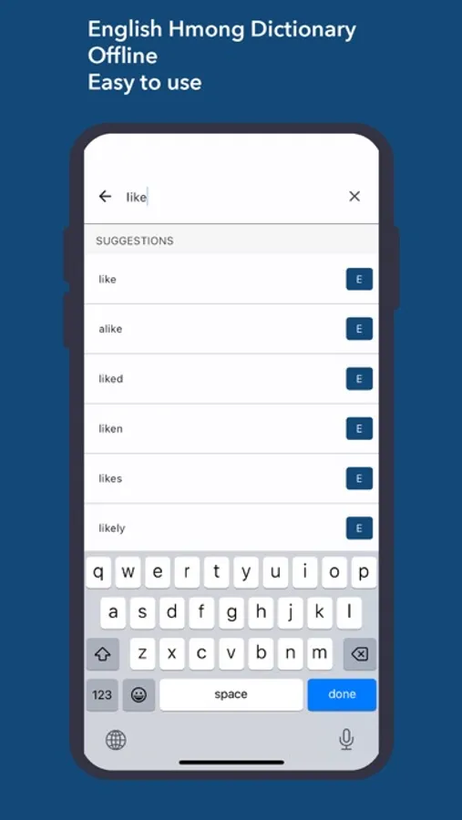With nearly 9.000 English to Hmong and nearly 8.000 Hmong to English words, this is the most sufficient English Hmong and Hmong English offline dictionary for ios with words updated regularly in term of quantity of words and their meaning.