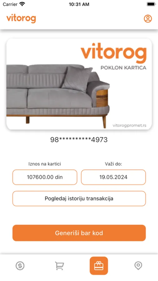 Loyalty and gift app for Vitorog loyalty customers.
