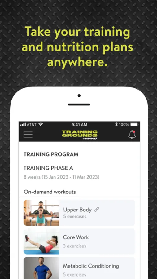 With the Training Grounds @ Bodyplex App, you can start tracking your workouts and meals, measuring results, and achieving your fitness goals, all with the help of your personal trainer.