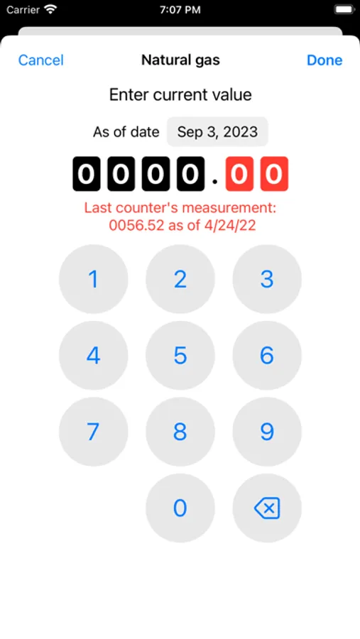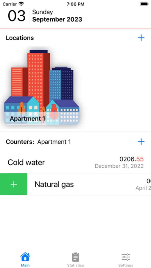 - Swipe right to quickly add new counter readings.