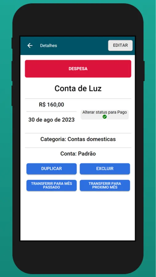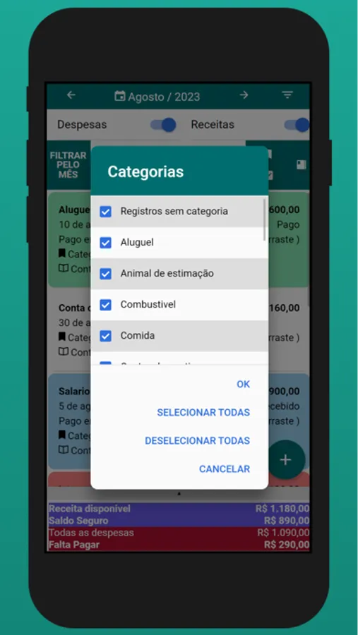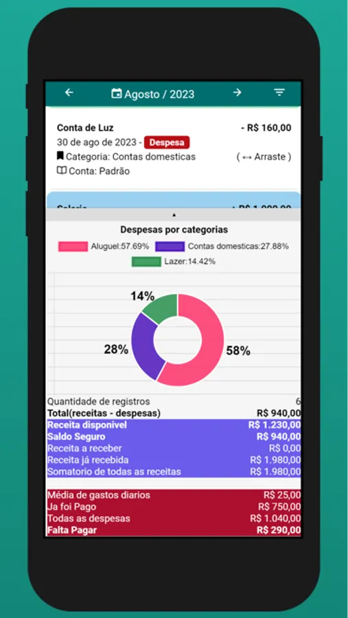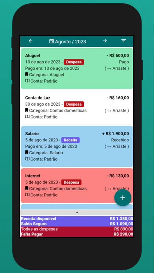 Aplicativo para controle financeiro pessoal. Ideal para controlar financas de casa e de pequenos comercios