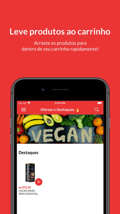 • Adicionar produtos no seu carrinho com um simples tocar e arrastar.
