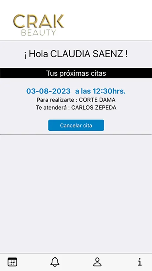 sistema de reservas online de salón Crak Beauty