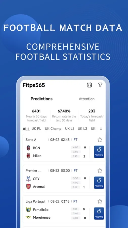 The must-have football app for international football score strategies, we offer the most accurate and reliable AI predictive models for all major football leagues and championships around the world. Real-time scores, game data, odds data at a glance.