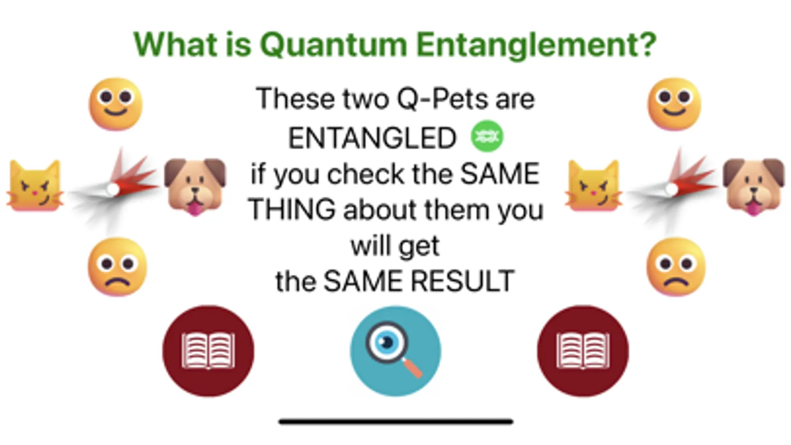 Dive into the fascinating world of Quantum Physics with the app “Quantangled Pets”. Adopt your very own Quantum Pet, a creature that may be multiple things at once. Is it a cat, a dog, or perhaps both? Is it happy, sad, or maybe something in between? You may check the state of your pet, but remember, in the quantum world, observation defines reality - you can only ask “yes/no” questions one at a time.