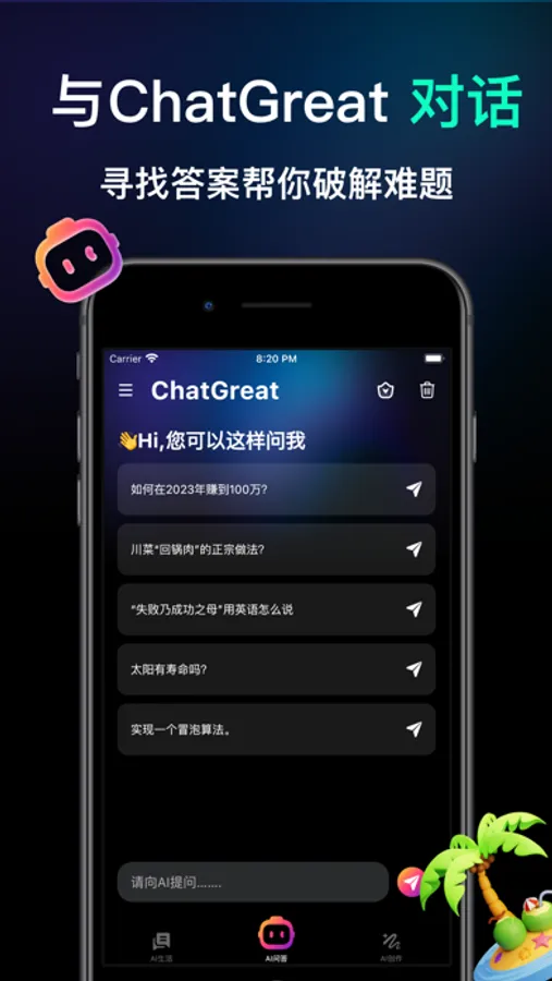 下载ChatGreat,与智能聊天助手尽情互动,体验无限的智能服务和创意灵感。无论你是工作中需要帮助,还是想找个聊天伙伴,ChatGreat都是你的最佳选择!