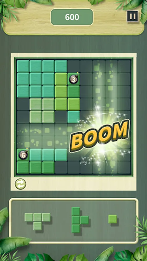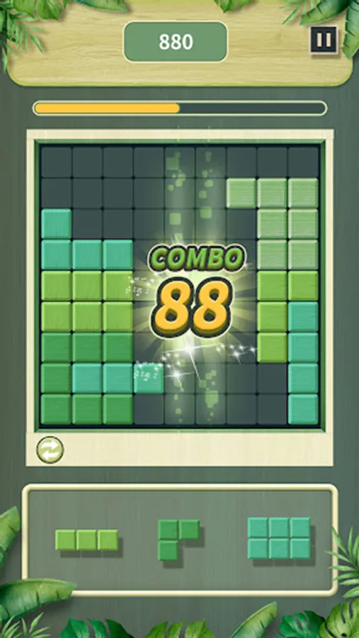 Place blocks in the 9x9 board and fill rows, columns or squares to clear them from the game. Drag and drop blocks onto the board to fill a row or column to complete elimination and clearing multiple rows or columns at once will produce a cool elimination animation as well as extra points. The more COMBOs you perform, the more points you get. It is up to your logical skills and layout strategy if you want to score high points. Test your IQ and exercise your brain in Woody Block - Green Wood Puzzle!