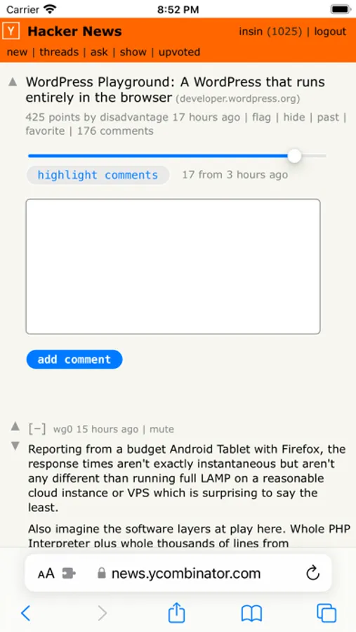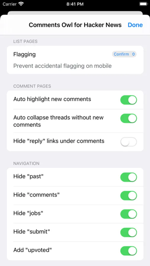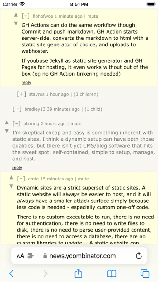 • Default comment folding controls are replaced with a Reddit-style left-aligned control, with a slightly larger hit target