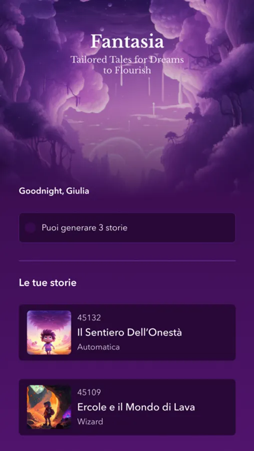 With Fantasia, you can create unique and engaging stories, immersing your children in enchanted worlds filled with fantastic characters and breathtaking settings. Thanks to artificial intelligence technology, each story will be personalized based on your children's tastes and preferences, making every reading experience special and captivating.