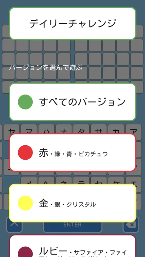 特定のバージョンを選ぶことで問題の範囲を自分で設定することができるぞ。好きなバージョンを選んで、そのバージョンに登場するモンスターの名前を全てクリアしよう!あらゆるバージョンから選択できるから、自分だけの挑戦を始めよう!