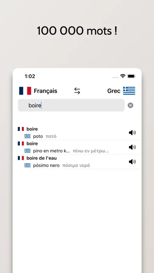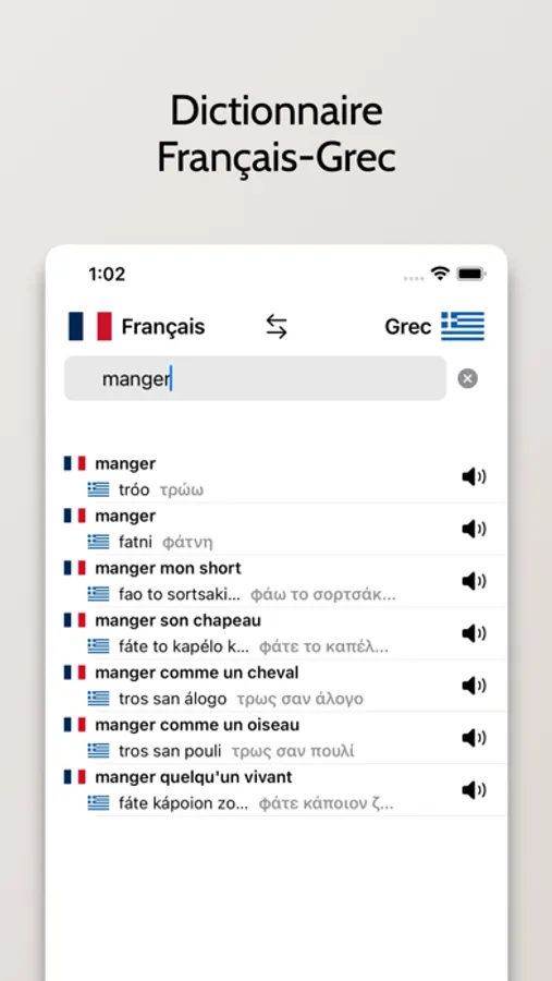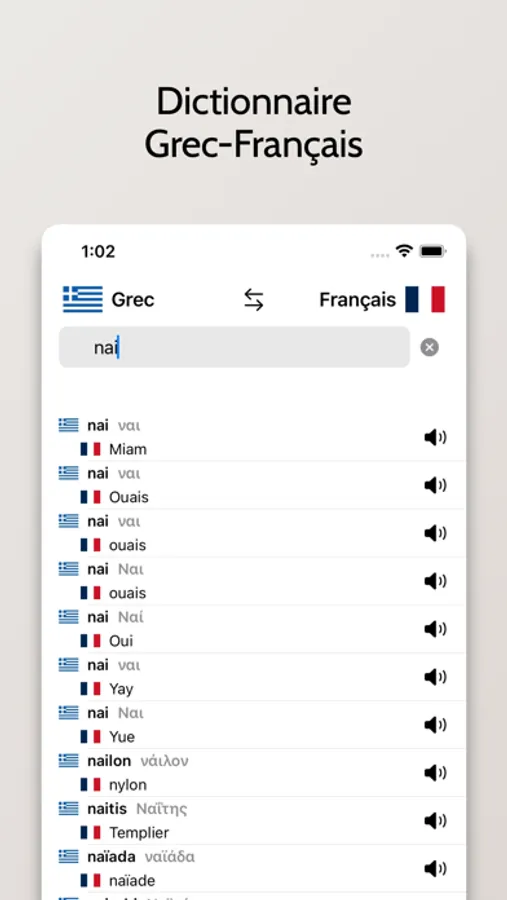 - Possibilité de rechercher à partir de mots en Français ou en Grec