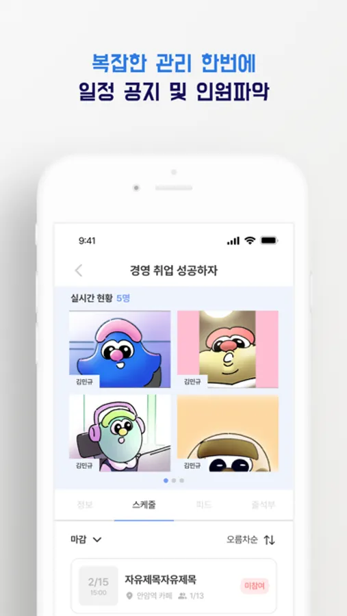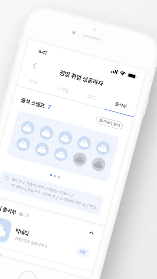 - 스케줄, 출석부, 피드, 채팅 등 기능을 합쳐 관리도구를 하나로