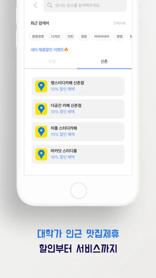 - 대학가 인근 카페/식당/스터디카페/술집/연습실 등 제휴를 통한 할인/서비스 혜택