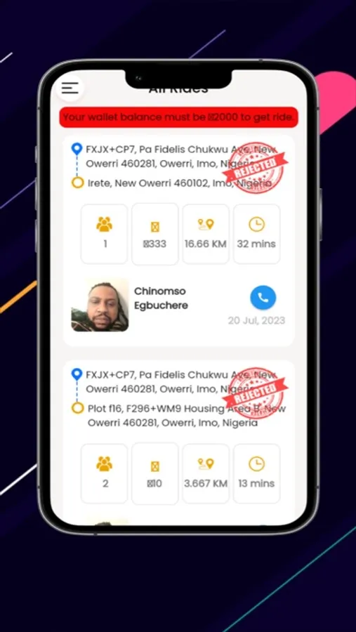 Esquare Cab Driver can check all the Normal Pending Trips / Running Trips / Completed Trips list and details
