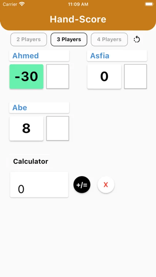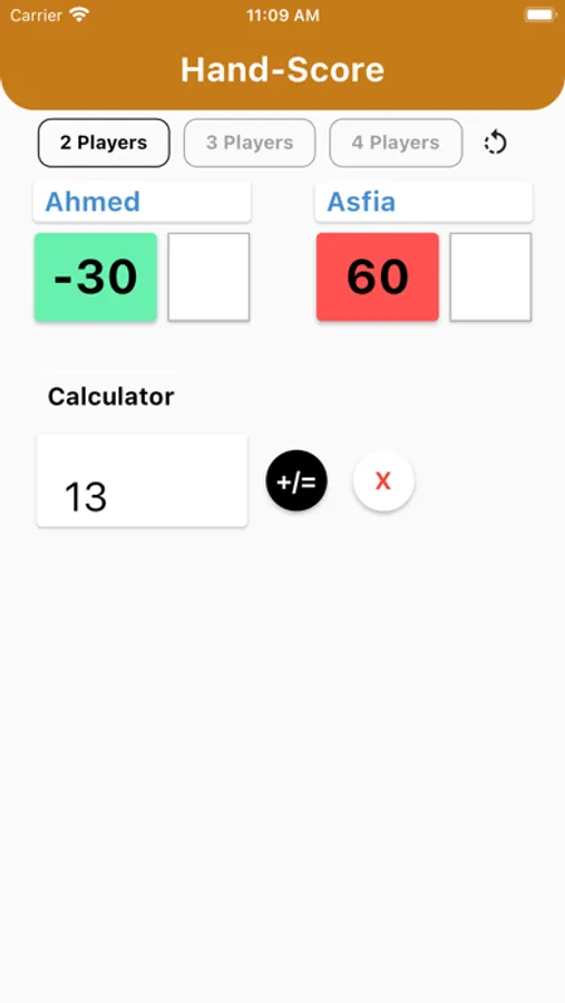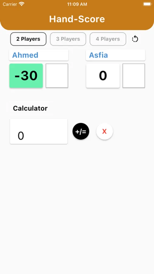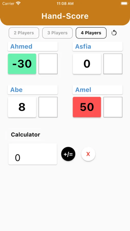 Keep track of any game that is 2-4 players. You can add or subtract the players scores. Use a negative number to subtract score. The app will display the winner as the player with the lowest score.
