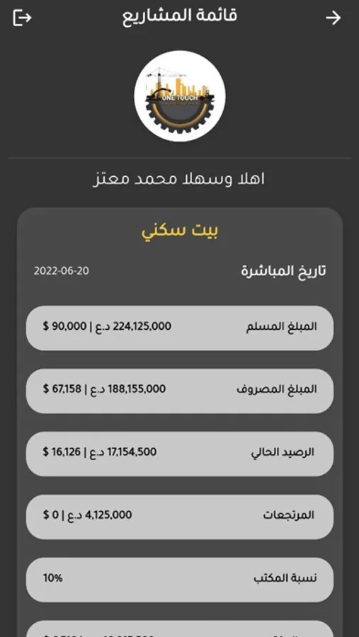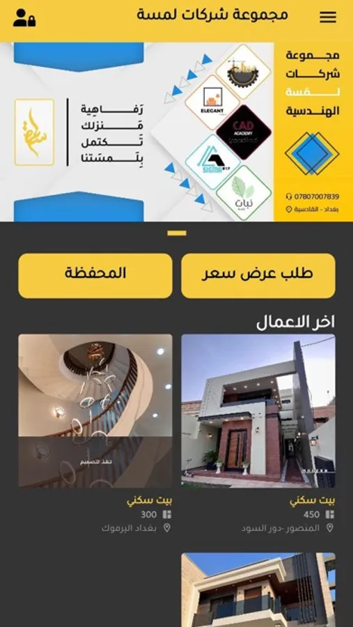 التطبيق خاص لعرض اخر الاعمال والاطلاع على حساباتك مع شركات لمسة الهندسية