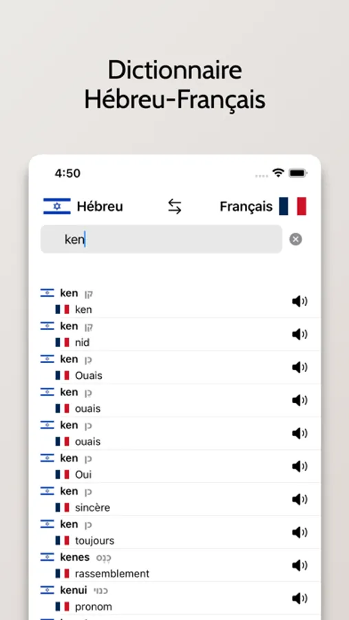 - Prononcez le mot en Hébreu dans la liste de recherche