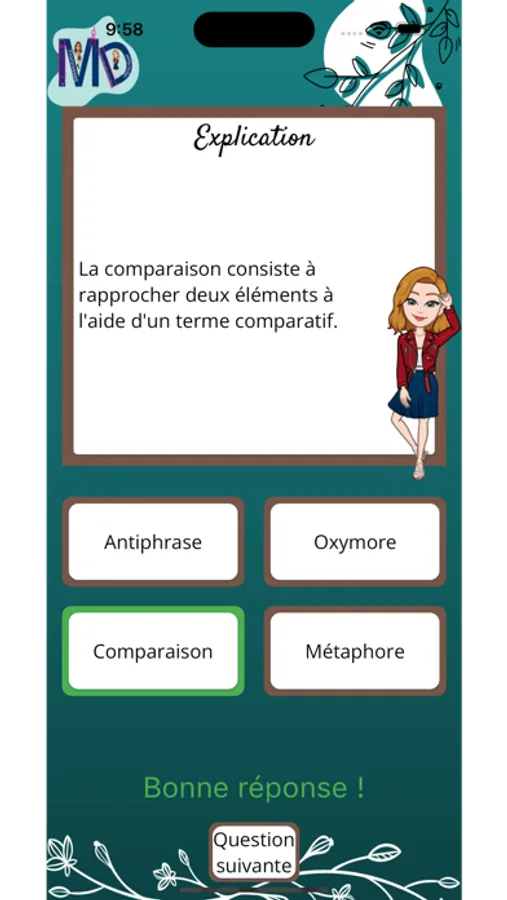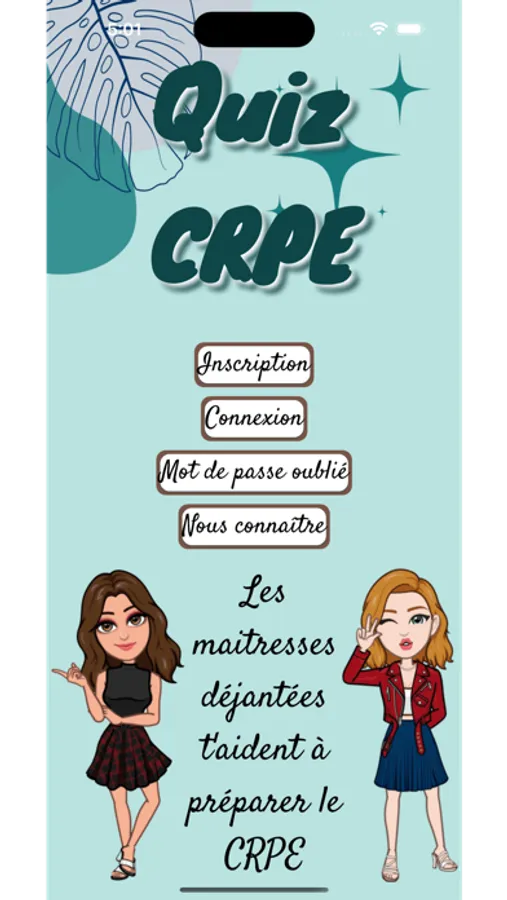 Cette application est créée par les Maitresses Déjantées, à (re)découvrir sur les réseaux sociaux : Instagram ou Facebook. Nous proposons chaque jour en story, depuis plus de deux ans, une à deux questions du jour de ce type gratuitement, ainsi que des ressources gratuites pour le CRPE et pour l’après-concours. Nous partageons aussi notre quotidien de jeunes professeures des écoles dans nos académies respectives.