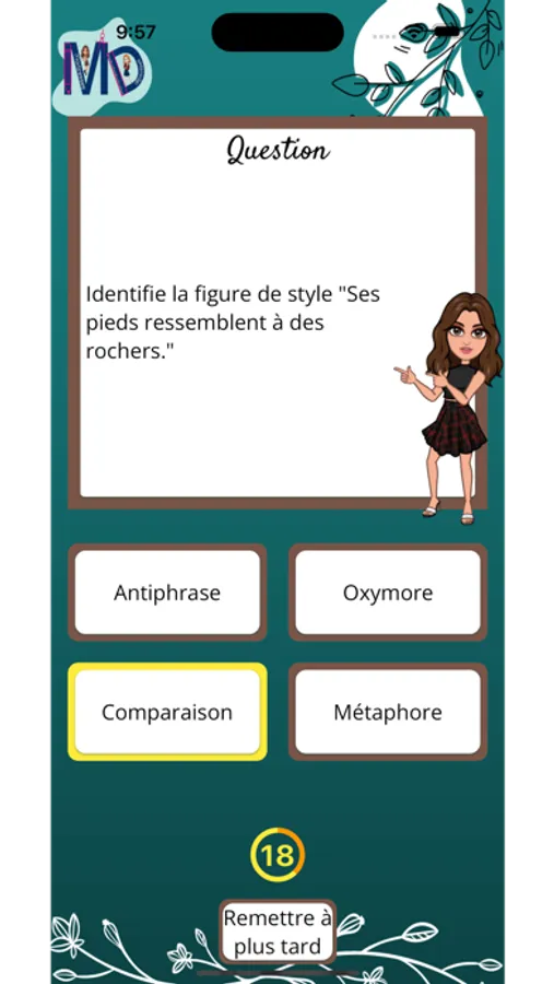 L’utilisateur peut remettre une question à plus tard s’il ne sait pas ou ne peut pas répondre. Cela lui permet notamment d’avoir le temps d’écrire lorsqu’il s’agit de démonstrations mathématiques.