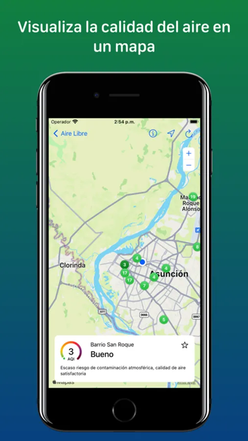Discover the environment around you with AireLibre, the app that provides real-time information about the air quality in Paraguay. Access the Air Quality Index (AQI) from the convenience of your device and keep a constant pulse on the environmental health in your location.