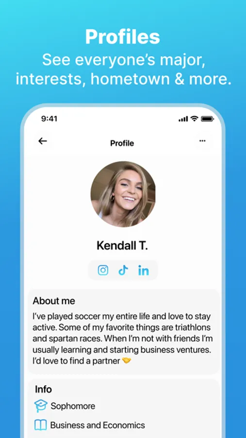 Discover and collaborate with others to do more of the things you love. See everyone’s interests, hometown, major, and more.