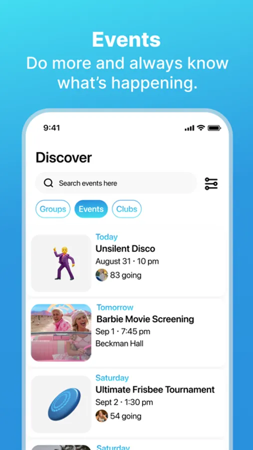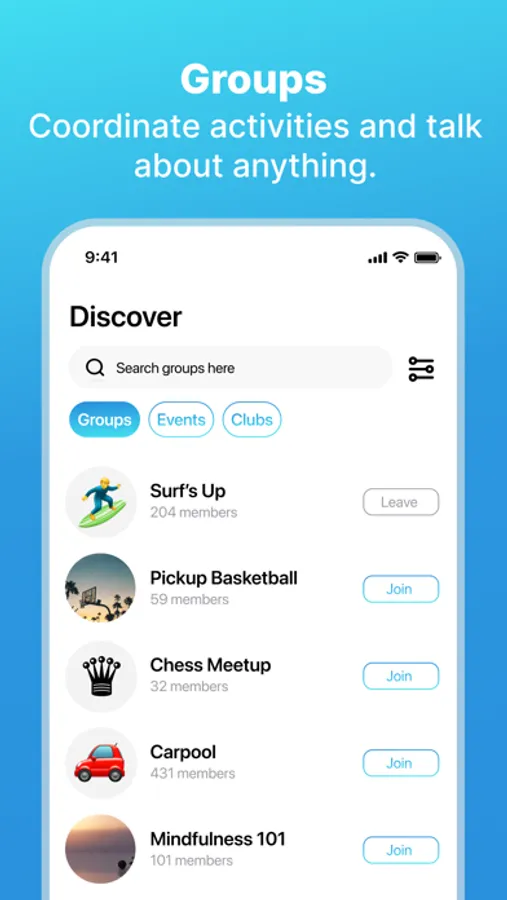 Find all school groups in one place. Organize pickup basketball, study sessions, or discuss whatever interests you. Groups are open to everyone.