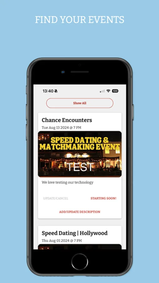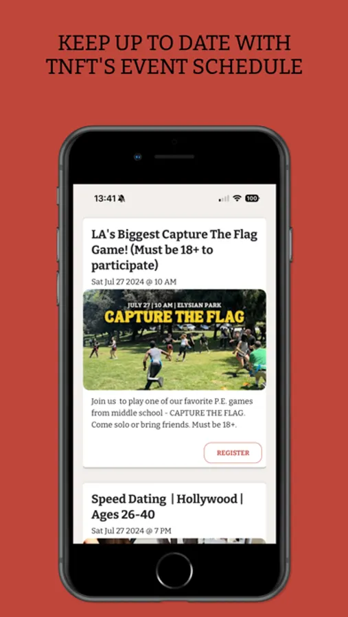 Download the TNFT app to browse upcoming events and manage your existing events. For speed dating and match making events you can update your matching profile and mark your matches during the event.