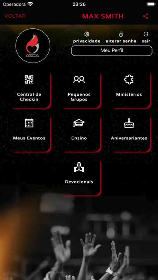 * No item Meu Perfil é possível atualizar seus dados cadastrais na Igreja;