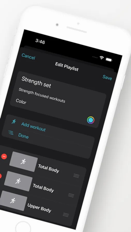* Easily build workout playlists--ordering the workouts in any way you like