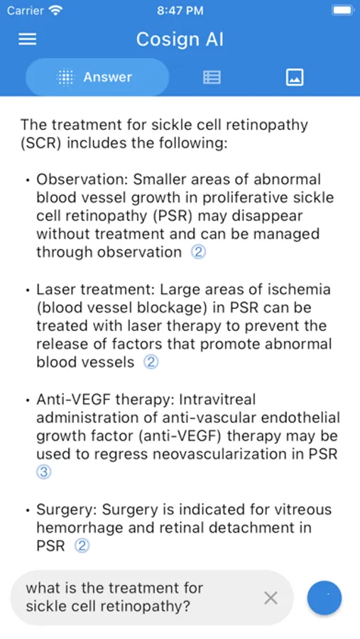 Our groundbreaking tool, specifically designed for physicians, leverages advanced AI to simplify access to trusted, evidence-based literature sources. With the Cosign AI App, never again will you need to trawl through piles of research. Our AI processes vast amounts of specialized and curated medical data to deliver concise, up-to-date insights in a question-and-answer format.