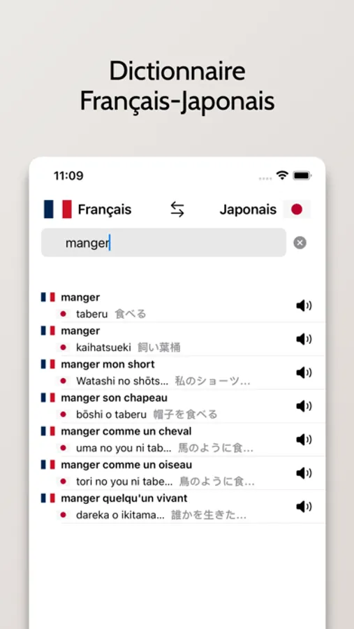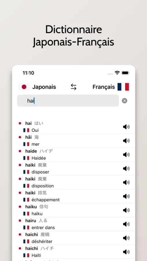 - Possibilité de rechercher à partir de mots en Français ou en Japonais