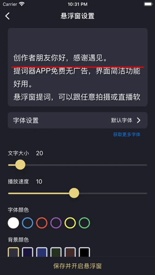 -提词面板的宽窄大小、台词字体的大小和颜色、台词滚动速度、统统支持自定义!