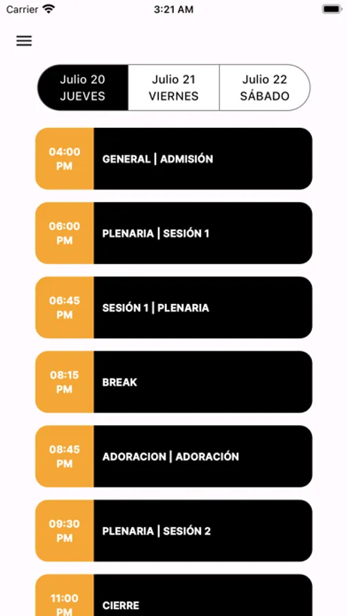 - Ahora puedes crear tus apuntes de cada plenaria, para crearlos ve a la sección de programa y selecciona una plenaria, luego da click en el botón "Crear una nota", para ver todas tus notas selecciona la opción "Notas" en el menu principal