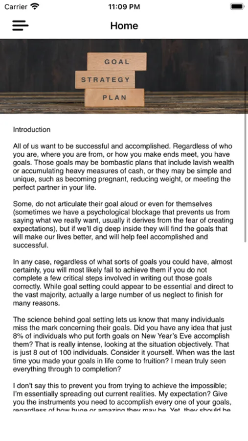 - Full guide on how to choose the right goal, how to break it down, how to write it, etc.