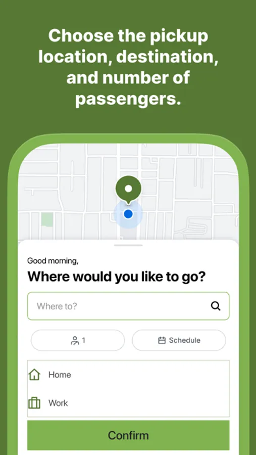 With a few taps, book an on-demand ride in the app and our technology will pair you with other people headed your way. No detours, no delays.