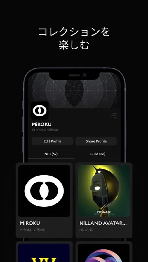MiROKUはNFTで新しい形のつながりを生み出すSNSコミュニティアプリです。