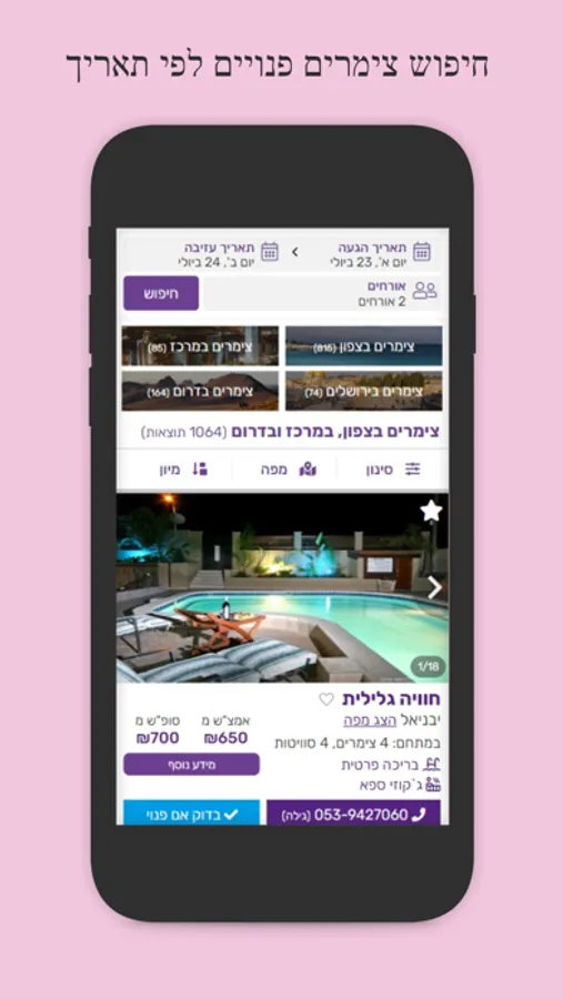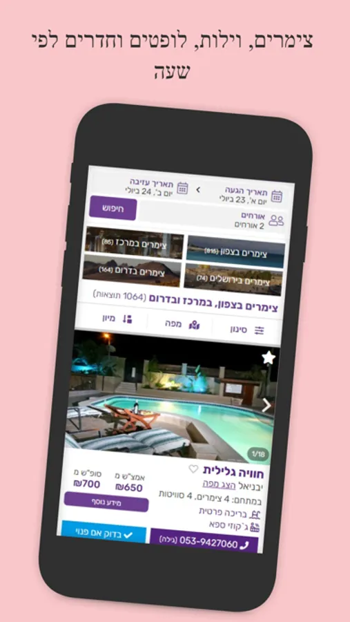 אפליקציית צימר R הינה יעילה ופשוטה להפליא לשימוש, ומקיפה את כל אזורי הארץ למציאת צימרים, וילות, חדרים לפי שעה, לופטים ומלונות.