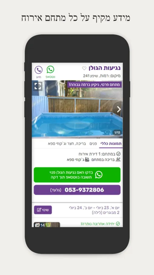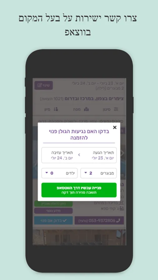 רואים מקום שאהבתם פשוט מתקשרים או שולחים ווצאפ ישירות לבעל המתחם ניתן לעשות גם הזמנה אונליין בקלות.
