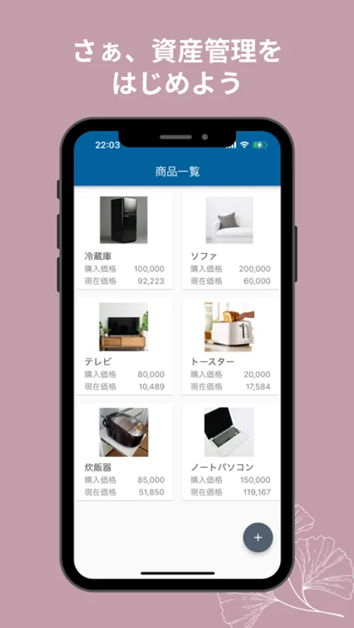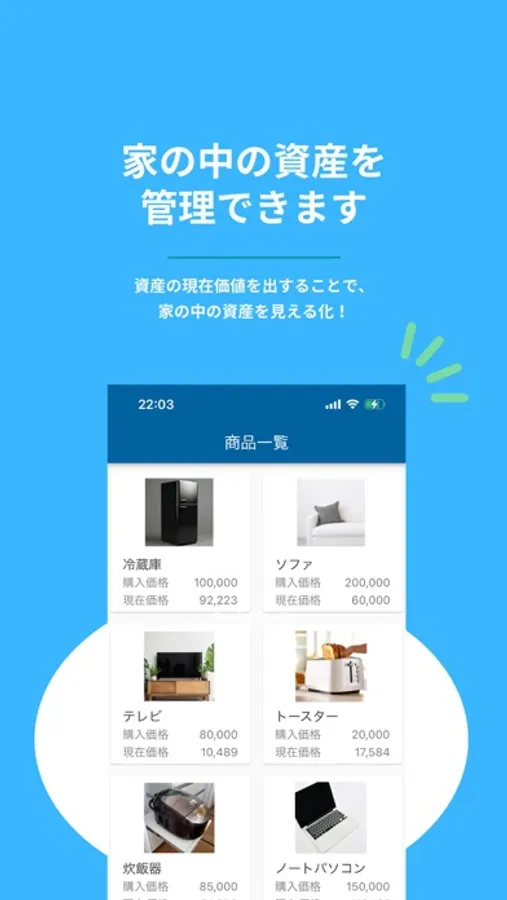 購入時の価格や予定使用期間を入力することで、それぞれのアイテムの現在の推定価値がリアルタイムで確認できるため、資産の見える化が簡単に行えます。