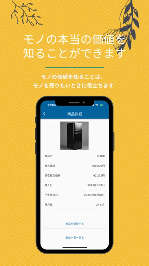 この情報をもとに現在の資産価値の確認や、次回の家電の購入の参考にすることができます。
