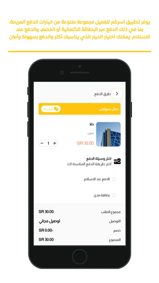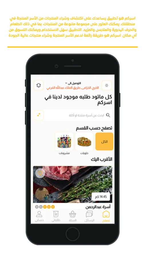 يقوم المستخدم بالبحث عن المنتجات حسب تصنيفها كما يمكنه تحديد المدى الجغرافي ويقوم باختيار وتاكيد الطلب