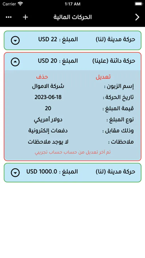 - اضافة حركات مالية بالربط مع العملات والزبائن .